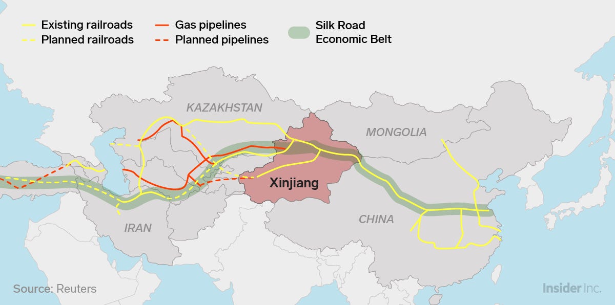 (Business Insider မှ This map shows a trillion-dollar reason why China is oppressing more than a million Muslims ကို ဆီလျော်အောင် ဘာသာပြန်ဆိုသည်။)