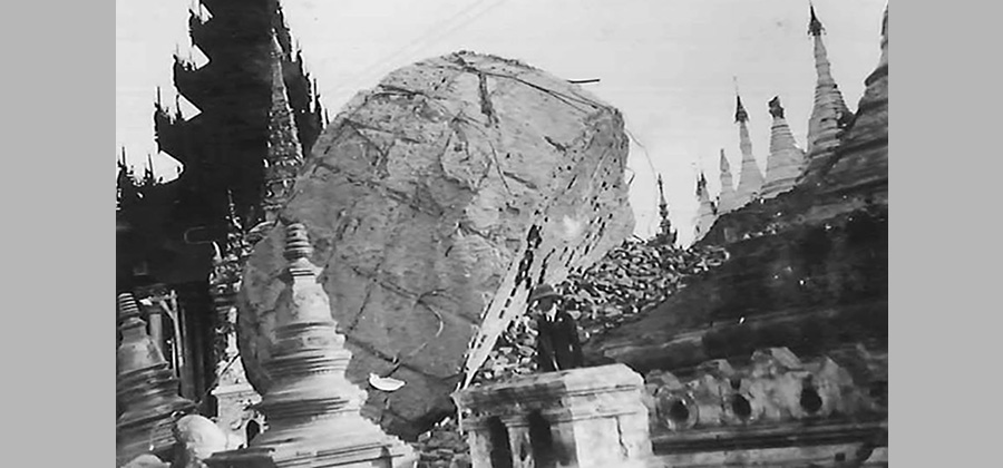 မြန်မာရဲ့ အရေးပါဆုံး ဘာသာရေး အထိမ်းအမှတ်တခုဖြစ်တဲ့ ရွှေမော်တောစေတီ ပြိုကျတယ်။ အဲဒီ စေတီတော်ဟာ ငလျင်ကြောင့် ယိမ်းယိုင်သွားပြီး ပြိုကျတယ်လို့ သတင်းတွေမှာ ဖော်ပြကြတယ်။ ကယ်ဆယ်ရေးအတွက် ကိုလိုနီအစိုးရက အရေးပေါ်အခြေအနေ ကြေညာပြီး အကူအညီပေးဖို့ အနီးရှိ ရန်ကုန်ကနေ ဆရာဝန်တွေကို စေလွှတ်ရတယ်။ ရန်ကုန်မှာလည်း အဲဒီငလျင် ရိုက်ခတ်ပြီး အဆောက်အအုံ ပြိုကျတာကြောင့် လူ ၅၀ နီးပါး သေပါတယ်။