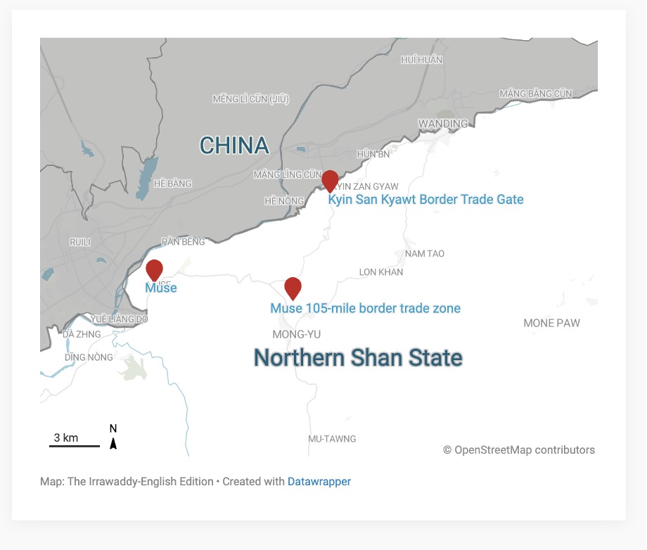 တဖက်တွင်လည်း စစ်တပ်သည် မူဆယ်မြို့ကို ဆက်လက် ထိန်းချုပ်ထားပြီး ထိုမြို့တွင် နယ်စပ်ဂိတ် နှစ်ခုရှိနေကာ အဓိကအားဖြင့် ပြည်သူများကို တနိုင်တပိုင်ပစ္စည်းများဖြင့် ဝင်ထွက်ခွင့်ပြုထားသည်။