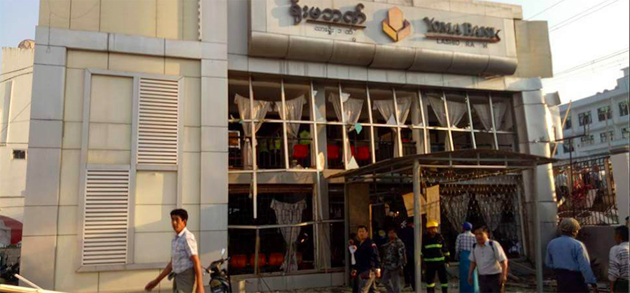 “၄ နာရီခွဲမှာ ပေါက်ကွဲမှုဖြစ်တယ်။ ရိုးမဘဏ်နဲ့ ဧရာဝတီဘဏ်မှာ ပျက်စီးမှုရှိတယ်။ ဘဏ်ဝန်ထမ်း ၁၃ ယောက် ဒဏ်ရာရ တယ်။ ၁၃ ယောက်ထဲက မိန်းမ ၈ ယောက်ထဲက ၂ ယောက်သေသွားပြီ။ အခုမှ စုံစမ်းစစ်ဆေး ဖော်ထုတ်နေဆဲဖြစ်ပါ တယ်” ဟု ၎င်းက ပြောပြသည်။